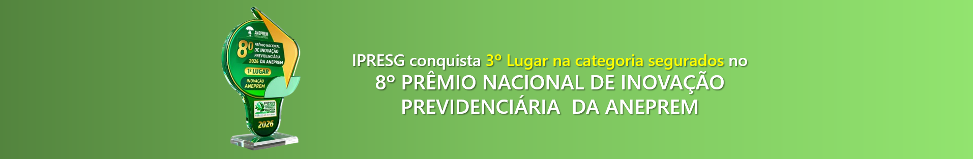 O IPRESG, ficou em 3º lugar no país no 8º PRÊMIO NACIONAL DE INOVAÇÃO